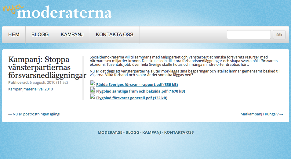 Moderaternas 10 dummaste kampanjer10. Kampanjen om att sossarnas jobbpolitik Ă€r dĂ„ligDen femte april i Ă„r lanserade Moderaterna en kampanj om bland annat att Socialdemokraternas jobbpolitik Ă€r dĂ„lig. 9. Blixtkampanjen om att Löfvens jobbpolitik Ă€r dĂ„ligDen sjunde oktober 2012 lanserade Moderaterna en âblixtkampanjâ riktad mot Socialdemokraternas ledare Stefan Löfven och hans dĂ„liga jobbpolitik. 8. Dubbelkampanjen om att sossarnas jobbpolitik Ă€r dĂ„ligDen femte oktober 2012 lanserade Moderaterna en kampanj om att Socialdemokraternas jobbpolitik Ă€r dĂ„lig. Samma dag lanserade de ocksĂ„ en annan kampanj om att Socialdemokraternas jobbpolitik för unga Ă€r dĂ„lig. 7. Kampanjen om att sossarnas vĂ€lfĂ€rdsjobbpolitik Ă€r dĂ„ligI september 2012 lanserade Moderaterna en kampanj om att Socialdemokraterna vill förbjuda vinster i vĂ€lfĂ€rden, och att det vore dĂ„lig jobbpolitik. 6. Kampanjen om att sossarnas jobbpolitik Ă€r dĂ„ligI januari 2012 lanserade Moderaterna en kampanj om att Socialdemokraternas jobbpolitik Ă€r dĂ„lig. 5. Kampanjen om att sossarnas jobbpolitik för unga Ă€r dĂ„ligDen sjunde oktober 2011 lanserade Moderaterna en kampanj om att Socialdemokraternas jobbpolitik för unga Ă€r dĂ„lig. 4. Kampanjen om att sossarnas försvars- och jobbpolitik Ă€r dĂ„ligDen sjĂ€tte augusti, mitt i valrörelsen, lanserade Moderaterna en kampanj mot pĂ„hittade socialdemokratiska nedlĂ€ggningar inom försvaret, och att dessa nedlĂ€ggningar var dĂ„lig jobbpolitik. 3. RUT- och ROT-kampanjerna om att sossarnas jobbpolitik Ă€r dĂ„ligDen femte mars 2010 lanserade Moderaterna en kampanj om att Socialdemokraterna (helt osant förvisso) ville skrota ROT-avdraget och att det vore dĂ„lig jobbpolitik. Det var bara tre dagar efter att de lanserat en annan kampanj om att Socialdemokraterna ville skrota RUT-avdraget, och att det vore dĂ„lig jobbpolitik. 2. Kampanjen om att sossarnas jobbpolitik Ă€r dĂ„ligI maj 2009 lanserade Moderaterna en kampanj om att Socialdemokraternas jobbpolitik Ă€r dĂ„lig. Socialdemokraternas ekonomiska politik var ocksĂ„ dĂ„lig, enligt kampanjen. 1. Kent Perssons âkampanjâ mot negativa kampanjerKlassisk Kent. Categories: Debattörer